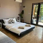 Här erbjuds också klädloge och sitthörna samt utsikt över trädgården. Det finns också plattskärms-TV med satellitkanaler och flerkanals TV. I badrummet finns även en separat toalett och en dusch. Badlakan och handdukar finns också bland badrumsfaciliteterna.